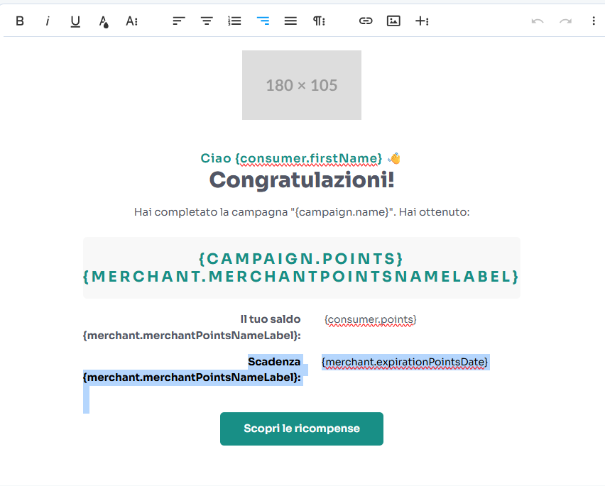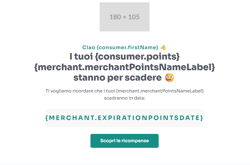 Se utilizzi una SCADENZA DINAMICA dei punti, rimuovi la seguente parte di testo dal messaggio di notifica, poiché la data non verrà mostrata correttamente avendo ogni punto la propria scadenza: