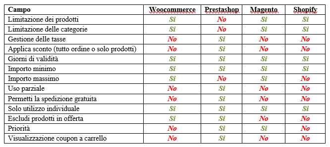 Nota: l’elenco dei campi disponibili per la configurazione avanzata delle ricompense fa riferimento alla piattaforma Woocommerce. Per eventuali campi aggiuntivi e campi non disponibili per altre piattaforme CMS fare riferimento alla tabella sottostante.