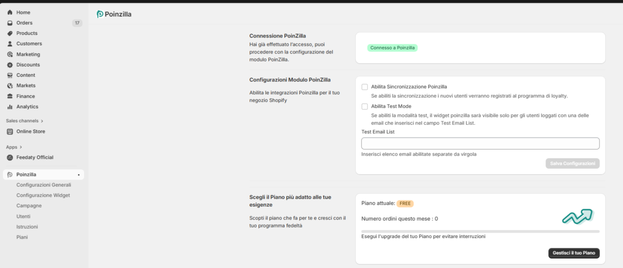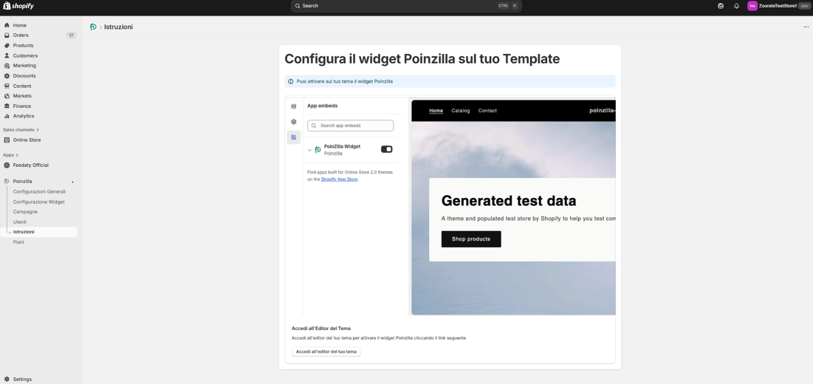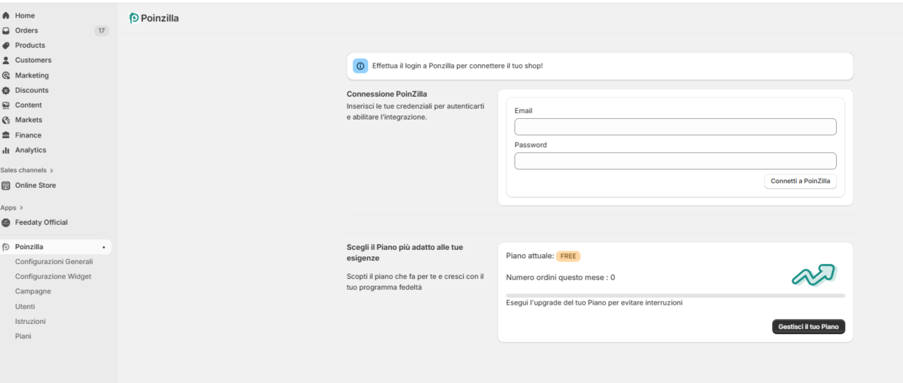 - Vai su App Poinzilla nel pannello di amministrazione di Shopify