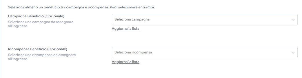 Se durante la configurazione di un livello VIP vuoi associare una campagna o una ricompensa come beneficio all’ingresso, segui questi passaggi:
